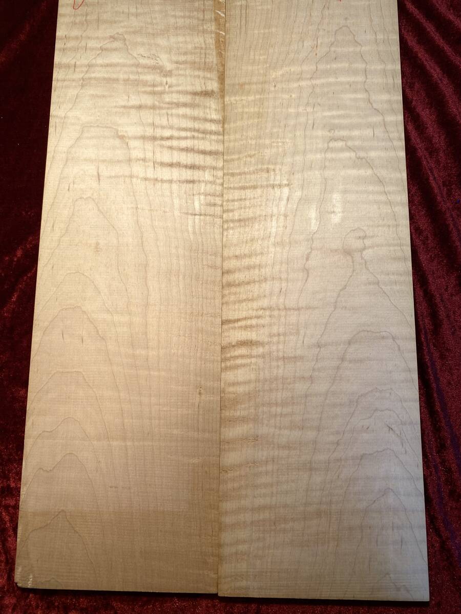 大切にストックしていたフラットトップ用のハードメイプル ブックマッチ(ベース対応 ボディトップ材)になります。