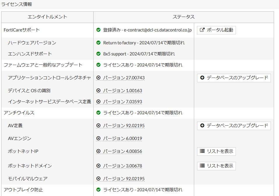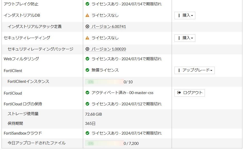 機器へのログインIDとパスワードは初期値となっております。 ●ファームウェアバージョン:v6.0.4 ・IPS&アプリケーションコントロール ・・・24年07月14日迄 ・アンチウイルス ・・・24年07月14日迄 ・Webフィルタリング ・・・24年07月14日迄 安い理由は下記のとおり ・Fortinet社へのユーザー登録情報が不明な為、ユーザーアカウント利用が必要な作業は行えません。 ・ユーザー登録の手続き、ライセンスの更新が必要な場合は落札者様自身で正規代理店にご依頼いただくことになります。 ☆ 有効期限が切れましても使用することは可能です。 | ||||