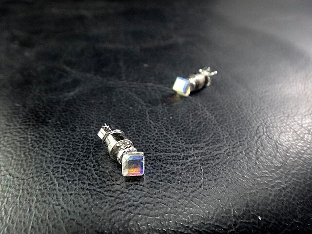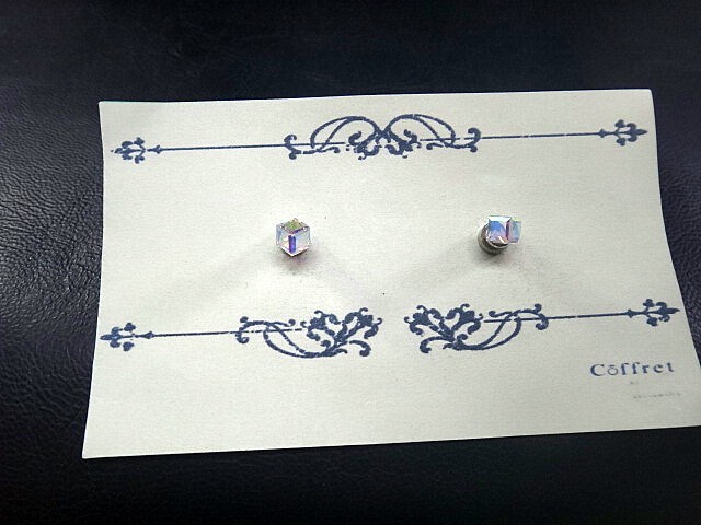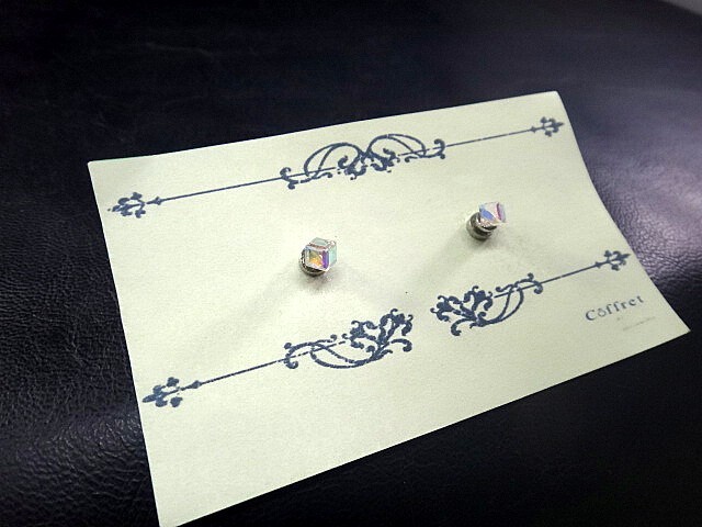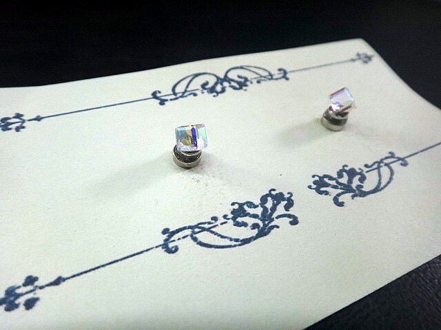 5㎜のグラス キューブ オーロラカラー をとめたマグネット イヤリング