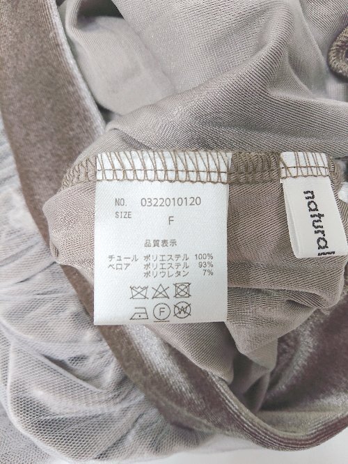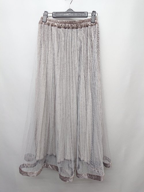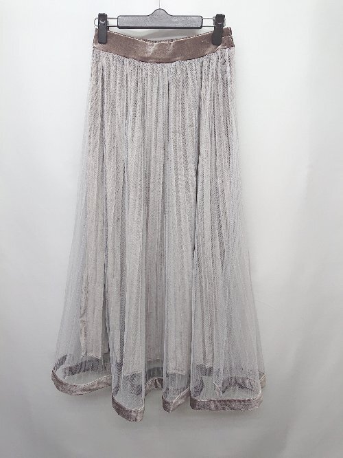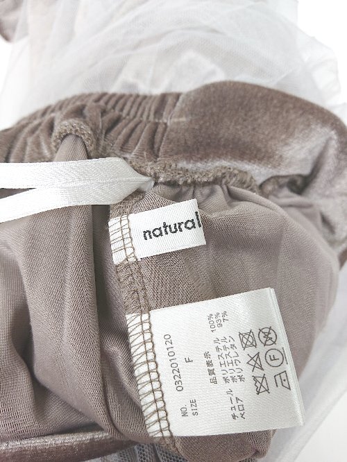 ◇ natural couture ウエストゴム ベロア調 ロング プリーツ チュール スカート サイズF ブラウン ホワイト レディース P