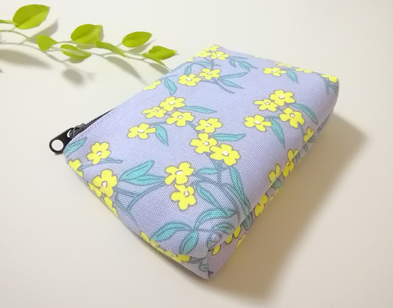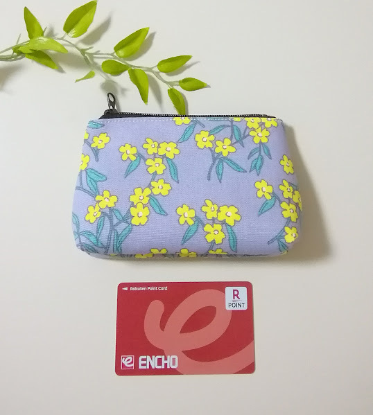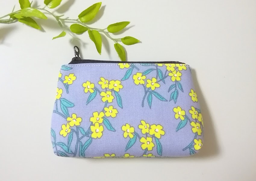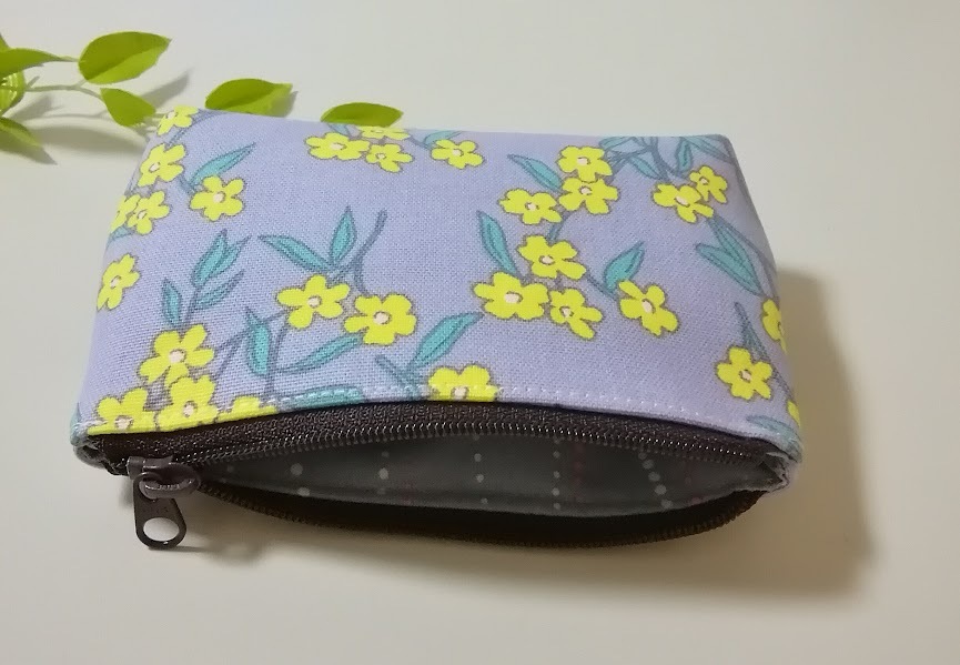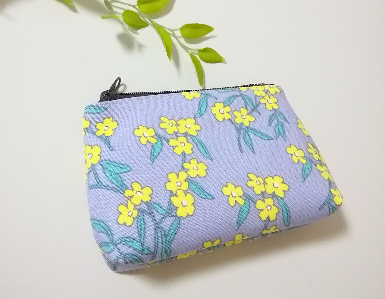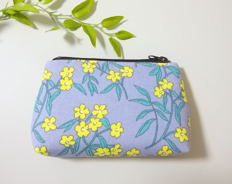 ハンドメイド〈台形が可愛い〉マチ付きポーチ   大人可愛いボタニカル柄/ユーフォルビア  (12×9×3)