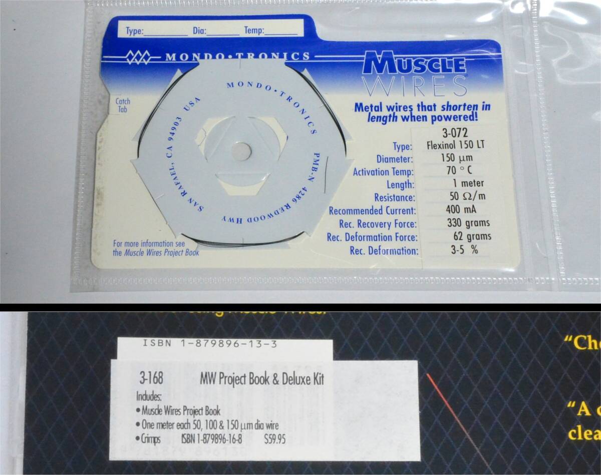 形状記憶合金の実験キット Muscle Wires Project Book & Deluxe Kit, 3rd Ed. R.G. Gibertson著 形状記憶合金3本付き (送料185円~)