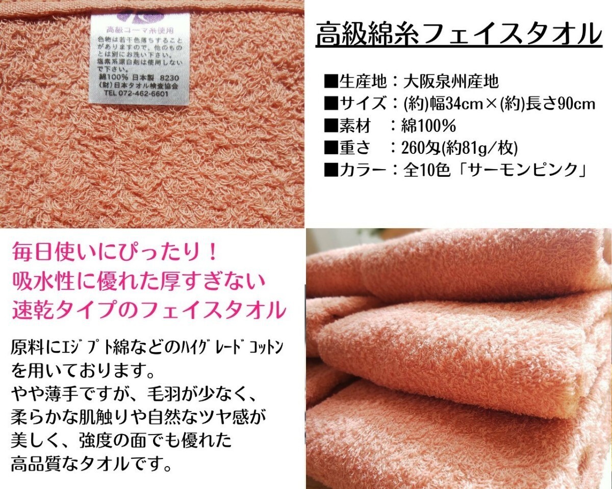 【新品未使用】【泉州タオル】260匁高級綿糸コーマ 90㎝サーモンピンクフェイスタオルセット5枚 タオル新品 タオルまとめて 吸水性抜群