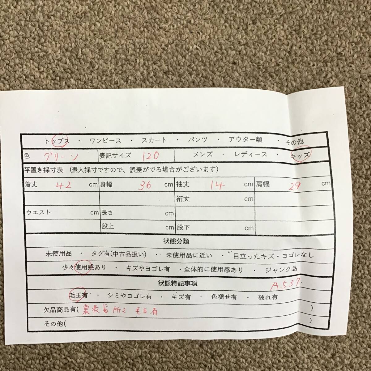 ・衣料品はたたみシワがある場合がございます。