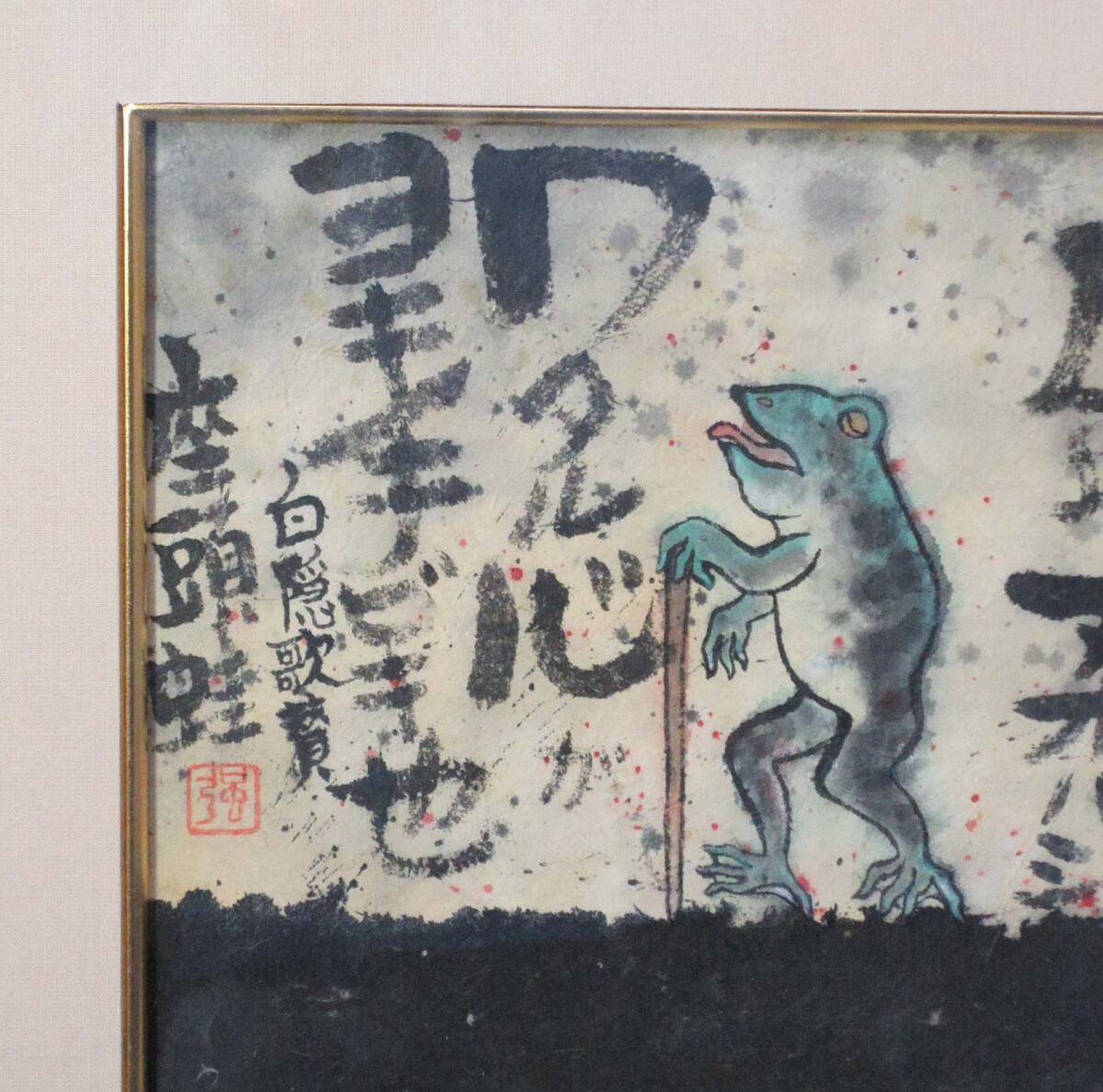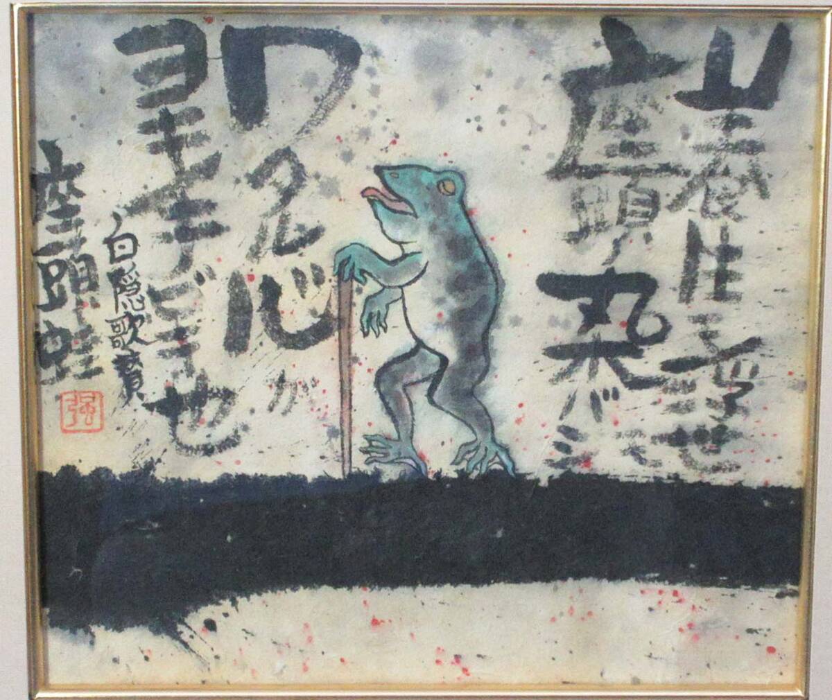 水彩 半田強 作 「座頭蛙」(色紙)