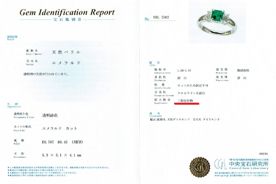 鑑別書にも三相包有物(三相インクルージョン)と記載されておりますのでコロンビア産という事です。