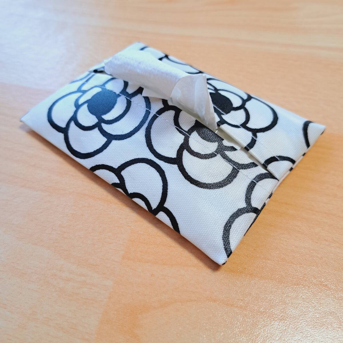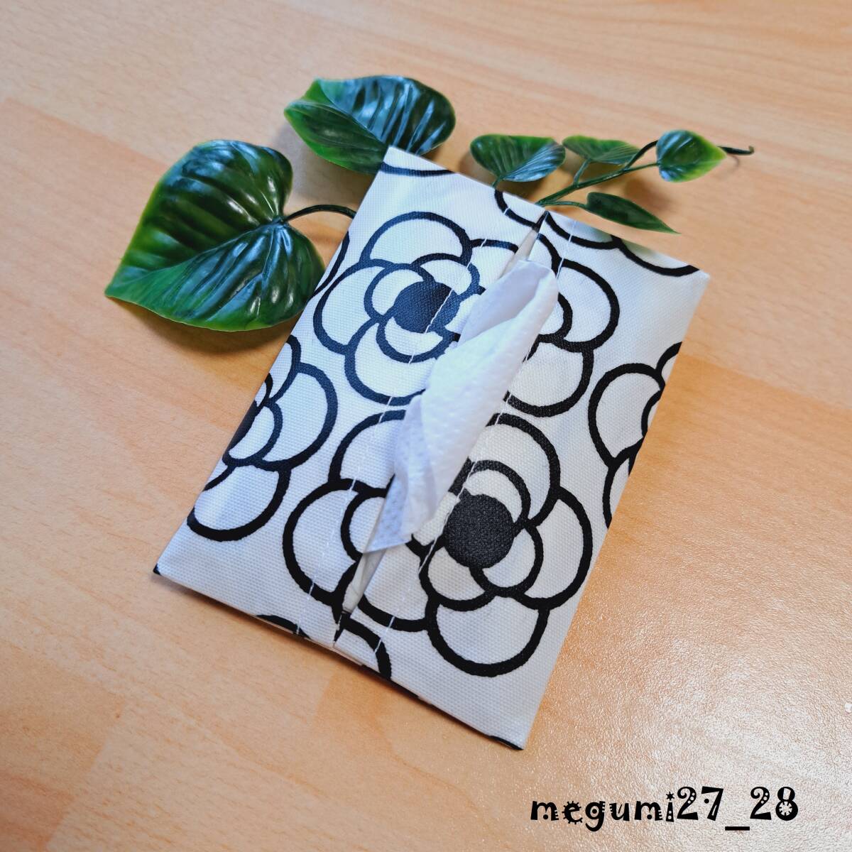 <ポケットティッシュケース>カメリア白◆ハンドメイド◆ラミネート加工②