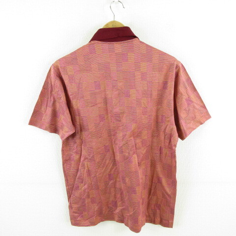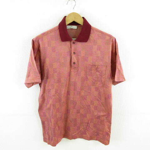 ミッレニオ MILLENNIO カットソー ポロシャツ 半袖 総柄 赤 M *A814 メンズ