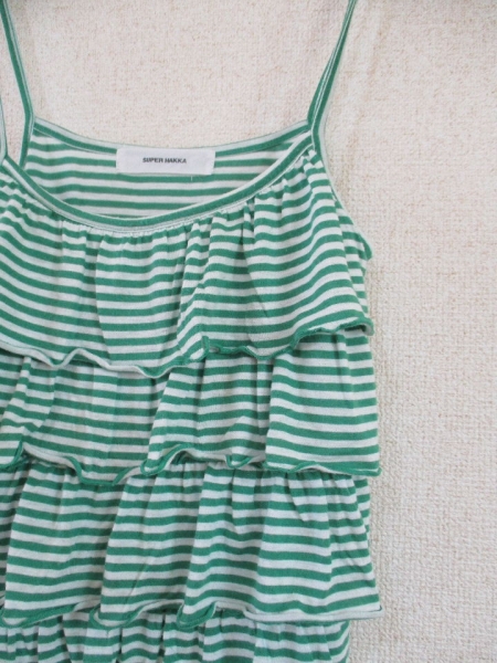 | 商品名 | SUPERHAKKA緑×白ボーダーフリルキャミソール(USED)80215② |