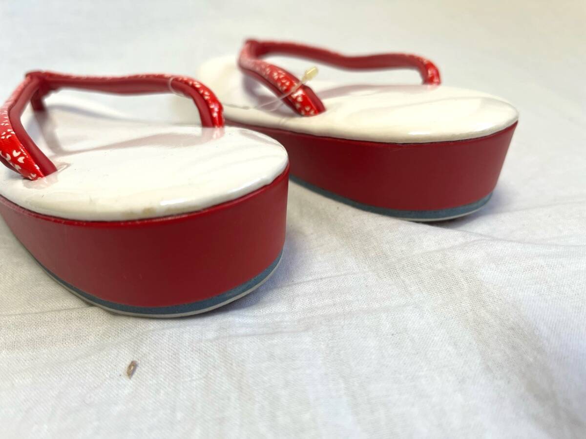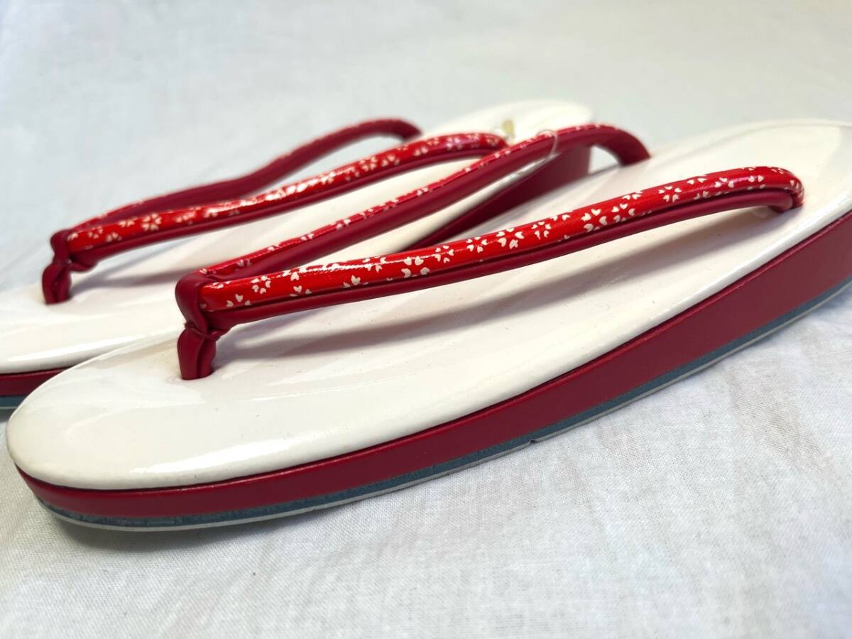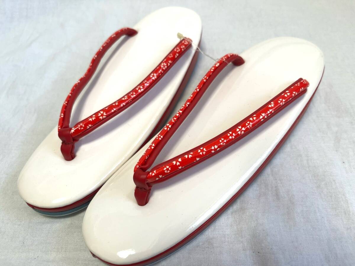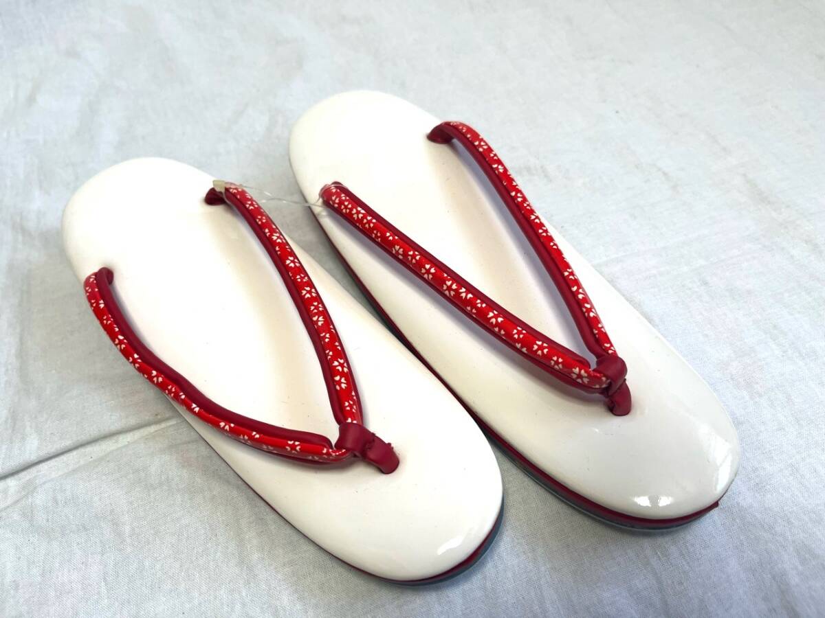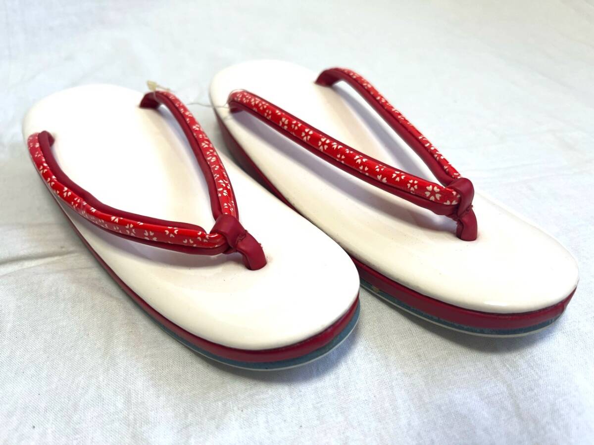 0074★草履*白*赤*花模様*鼻緒*履物*下駄*着物*和装*和服*和装小物*浴衣*レトロ*アンティーク*レディース*女性*お得★