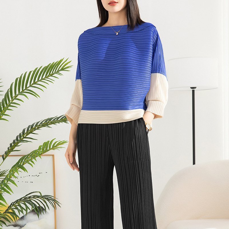 新作  レディーストップス 上着 プリーツ シャツ 弾力があり ドレープ性いい春夏 ブルー