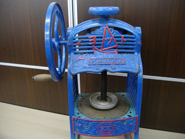 昭和レトロ かき氷機 当時物 手動式 USHIKUBOSIKI B型 ヨット YACHT HK JAPAN 現状品 約18㎏ カキ氷 業務用 アンティーク 苫小牧西店