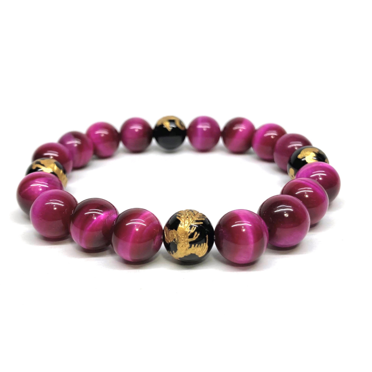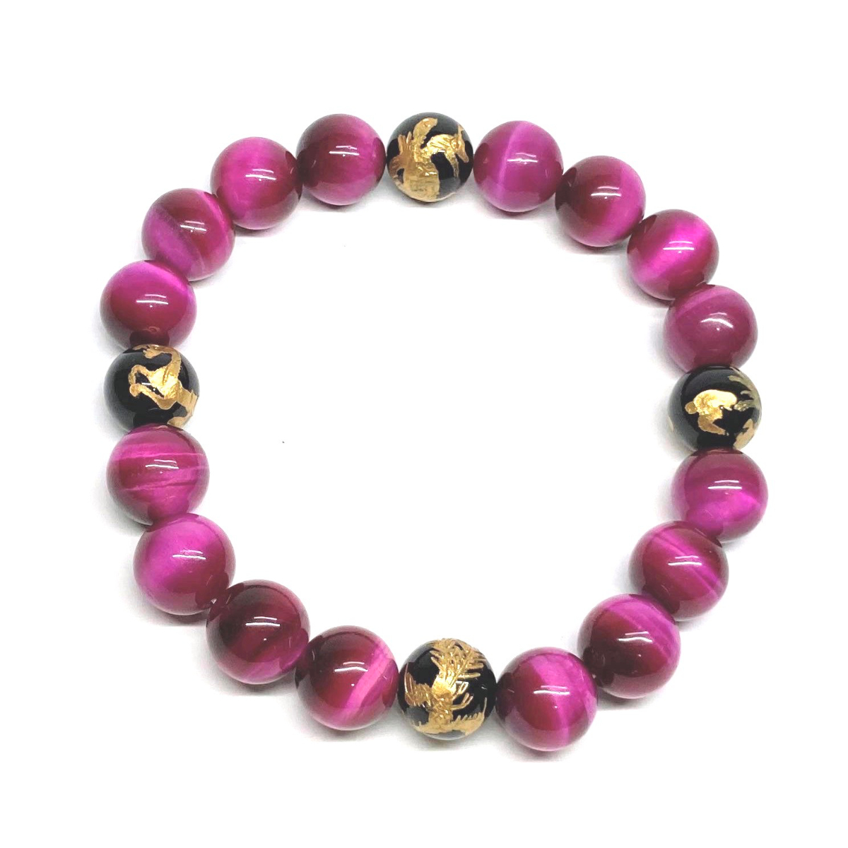 10mm 四神獣金彫オニキス×ピンクタイガーアイ パワーストーン ブレスレット天然石 運気上昇 開運 金運 恋愛運 お守り 青龍 白虎 玄武 朱雀