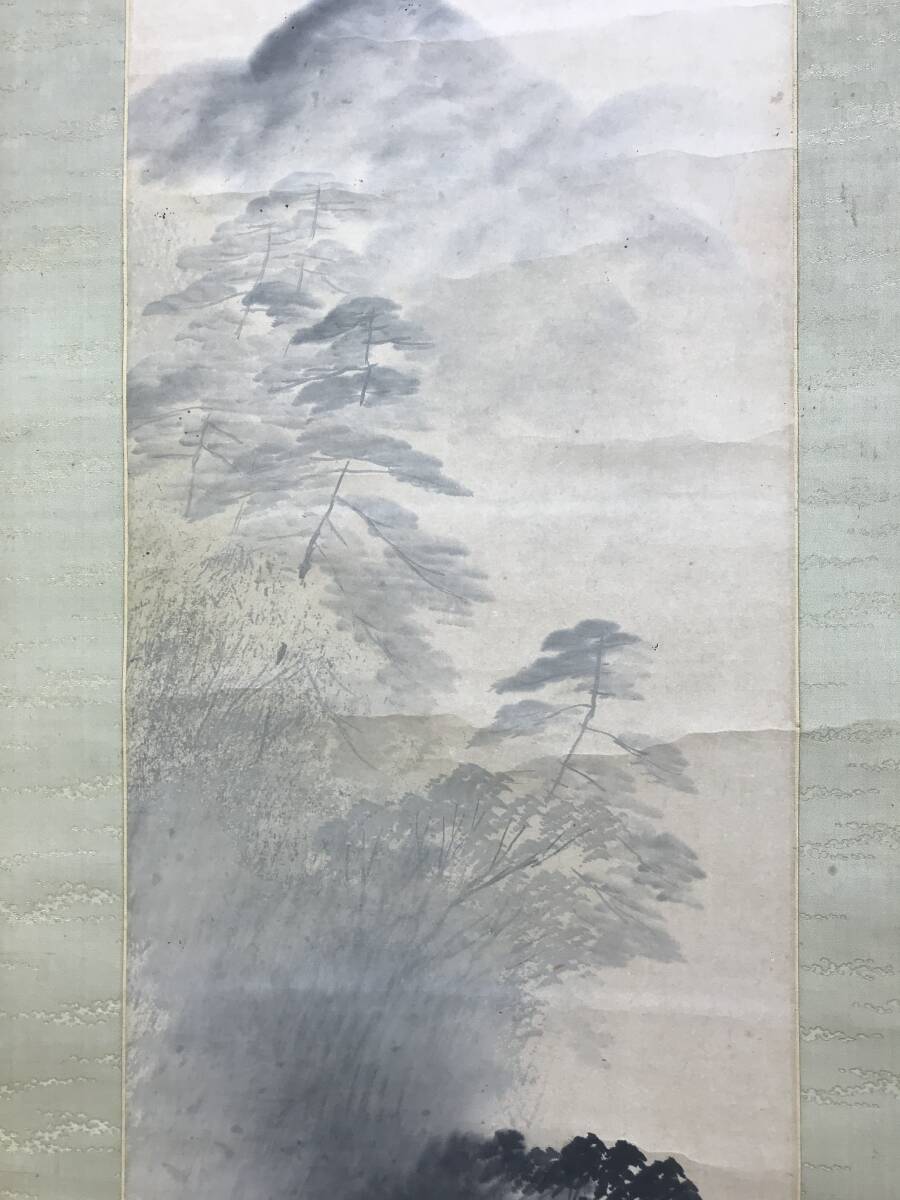 【作品状態】 本紙は紙本肉筆です。本紙は薄汚れ、汚れシミ、多数の折れと巻シワあります。表装は薄汚れあります。軸先は牙です。