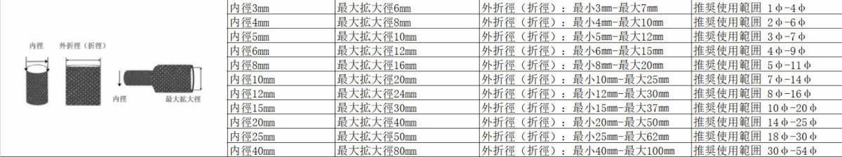 ※最大拡大径:編組スリーブを膨らませた限界状態での内径のことです。