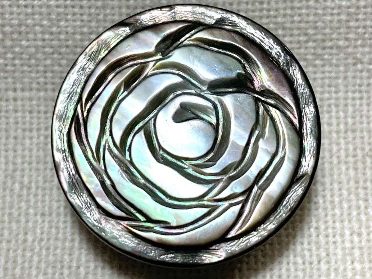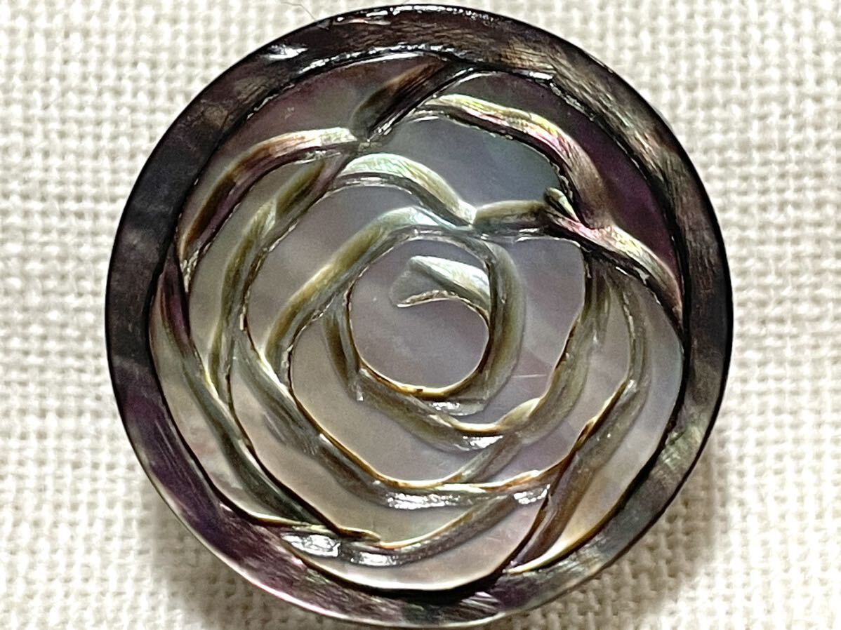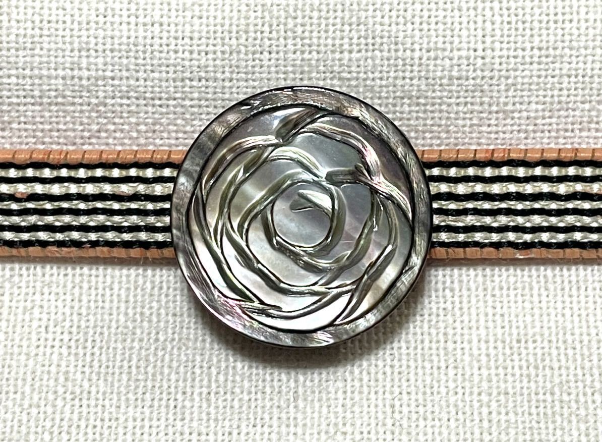 天然貝(黒蝶貝)のパーツを、帯留めにリメイクしました。