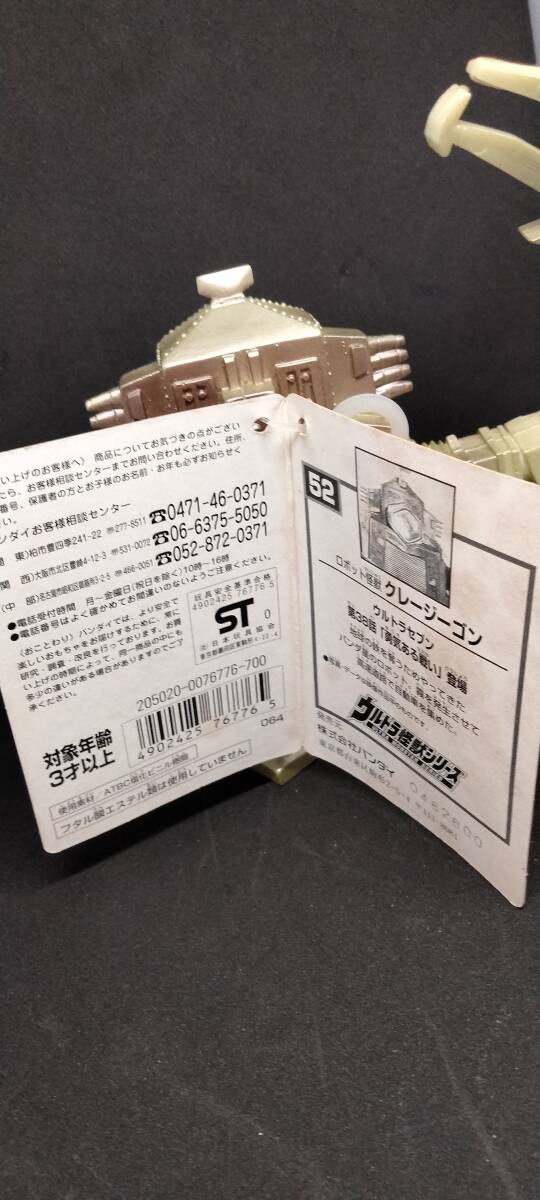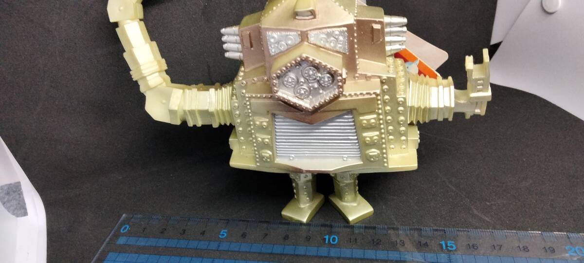 ウルトラマセブンに登場したロボット怪獣クレージーゴンのバンダイ製ソフビ。タグには「BANDAI 2000 MADE IN JAPAN」と記載があります。年数が経過していますが、日差しの入らない棚に保管していたので目立った傷や変色は見当たりません。個々の写真を見て判断してください。 梱包は環境に配慮し、できるだけ安価で売却したいので使用された段ボールや折り込みチラシなどのリュース素材を使用して発送します。 不明な点等があれば質問していただき、納得して入札をお願いします。