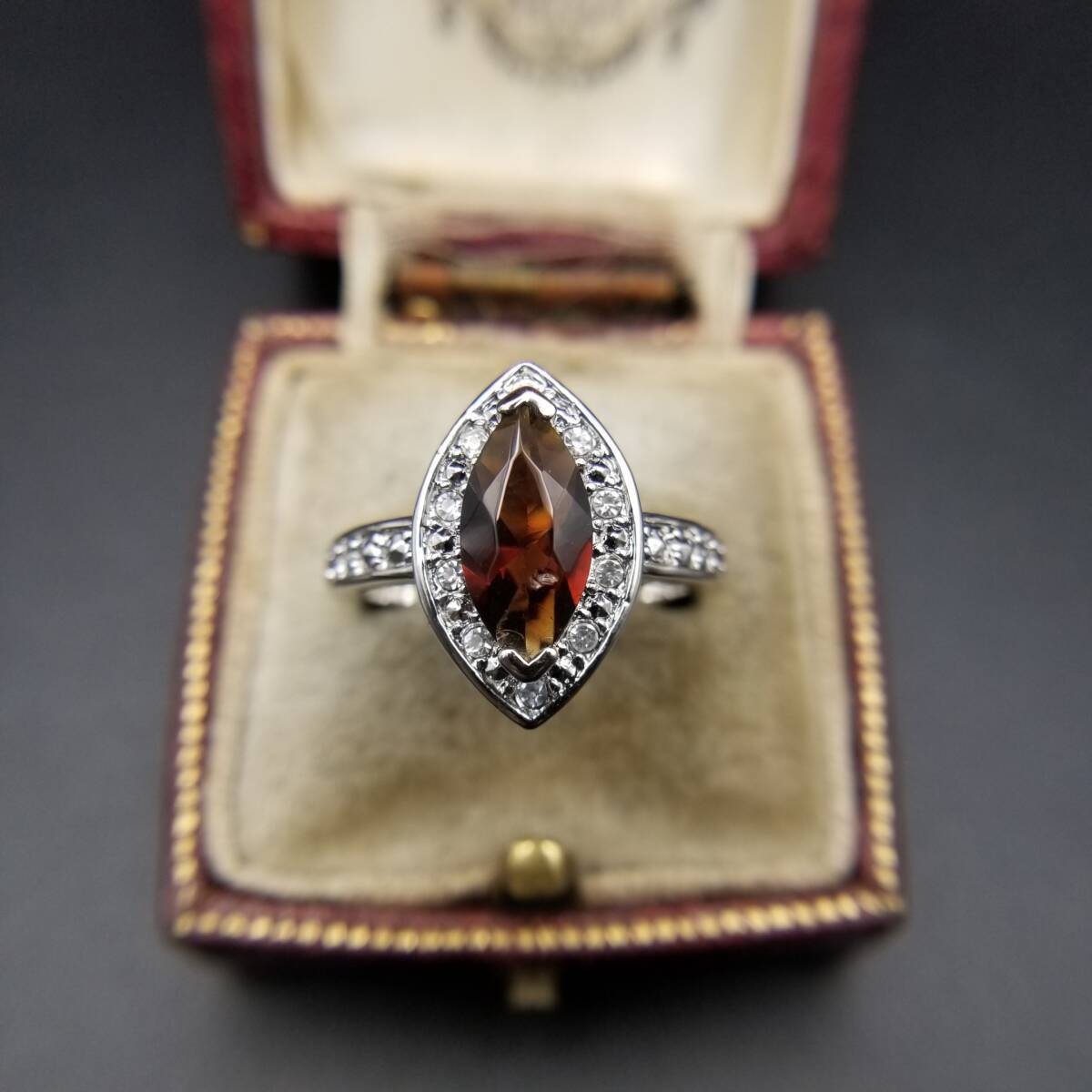 NV クリアブラウン マーキスカット ストーン エレガント 高級感 ヴィンテージ リング 指輪 ジュエリー 輸入 Y15-M
