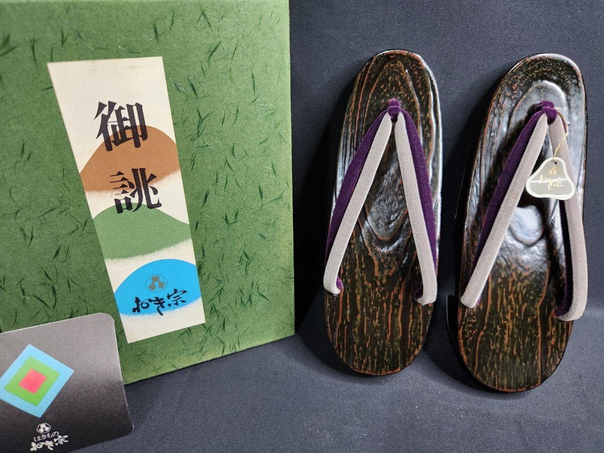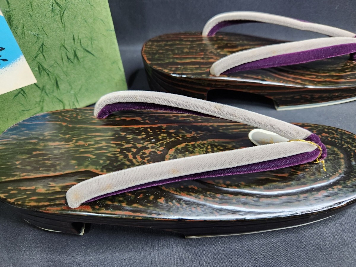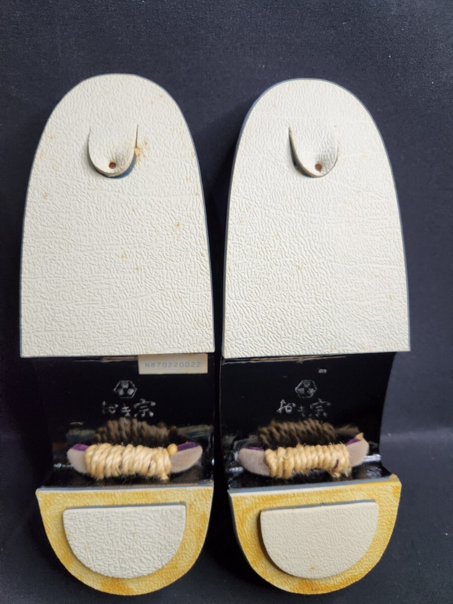 ▼新品未使用のデッドストック品ですが、長期保管品ですので、花緒と裏にシミのような物があります。