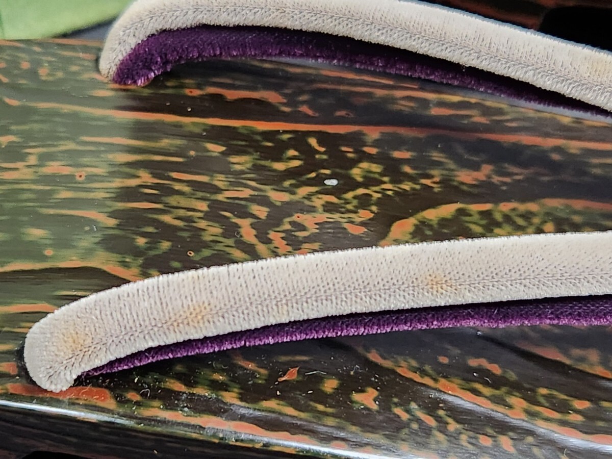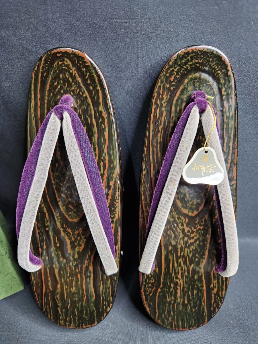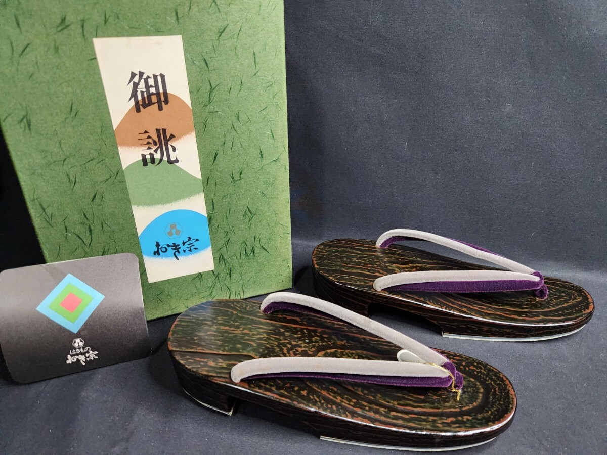 ▼新品未使用のデッドストック品ですが、長期保管品ですので、花緒と裏にシミのような物があります。