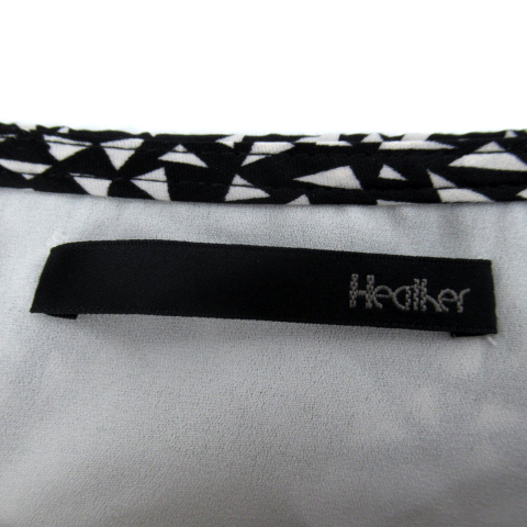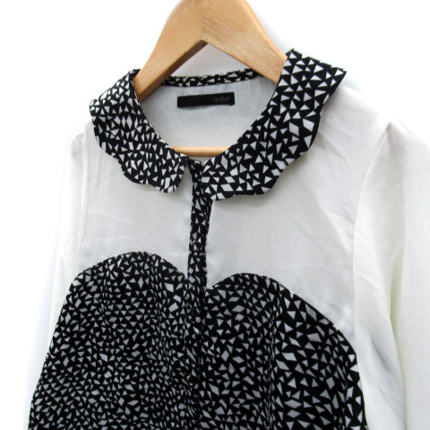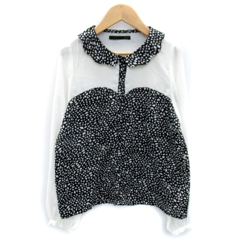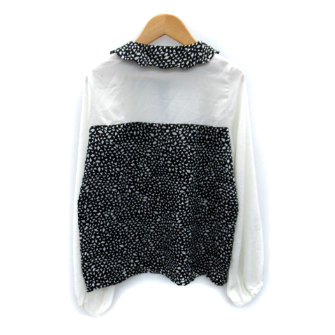 ヘザー Heather ブラウス シャツ 長袖 総柄 切替 透け感 F 白 ホワイト 黒 ブラック /SY24 レディース