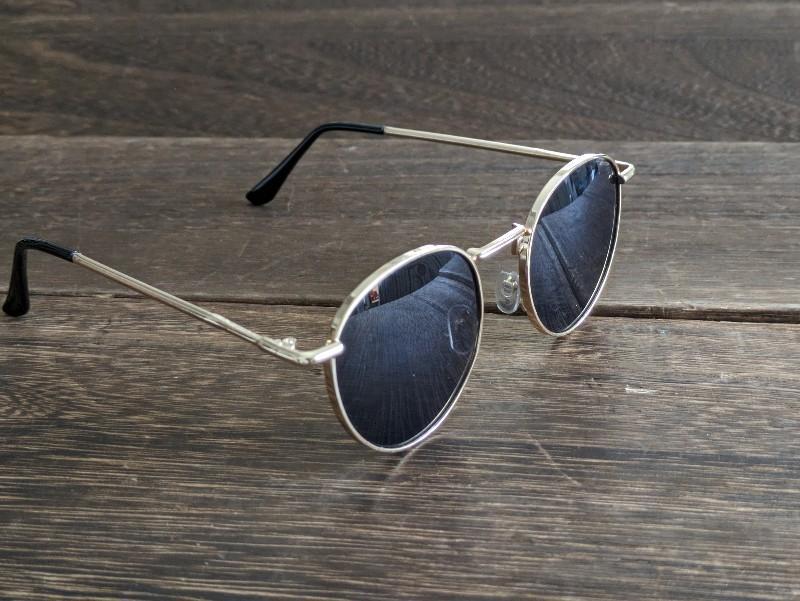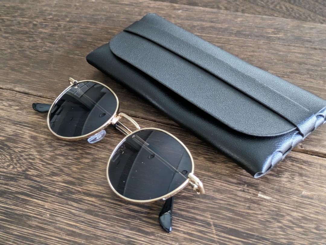 レンズ形...ラウンド レンズは濃いグレー。 ゴールドのフレームとの相性は抜群です。 フレーム、ヒンジの部分もしっかりしています。 安っぽさがない!むしろ高級感さえあります。 ファッション、バイク、キャンプ・・・シーンを選びません。 ケースも安っぽさはありません。 もちろんUVカット付き。