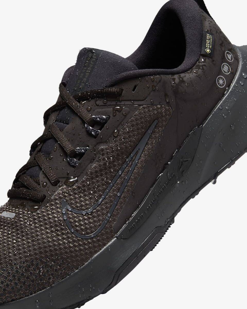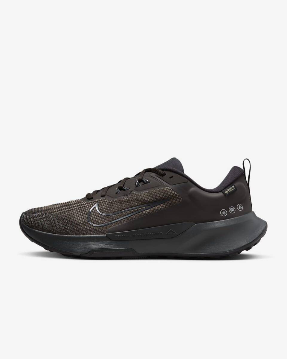 ——————————————————- 雨でも汚れにくく、ベビーユースできる 防水GORE-TEX・滑りにくいNIKEスニーカー ブラックでコーデに迷わない ——————————————————- 履き心地抜群の完全防水GORE-TEXです トレイル用でソールが滑りにくい形状です