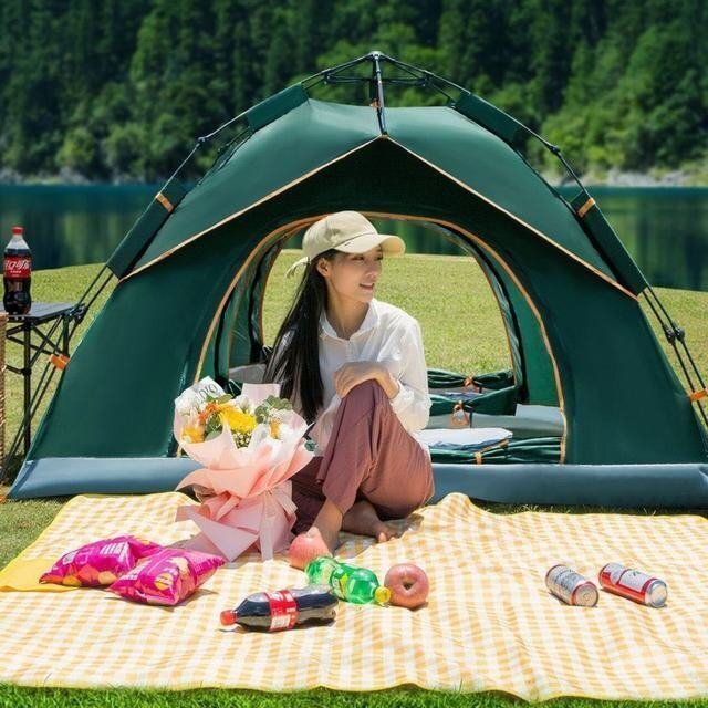 ワンタッチ式、一人でも5秒だけで簡単に設営できます、災害時の避難所などでも活躍します。製品はUVカット加工を採用しており、強い陽射しでも怖くないです。テント内側の紫外線対策はバッチリです。日差しからでも肌を守れます。