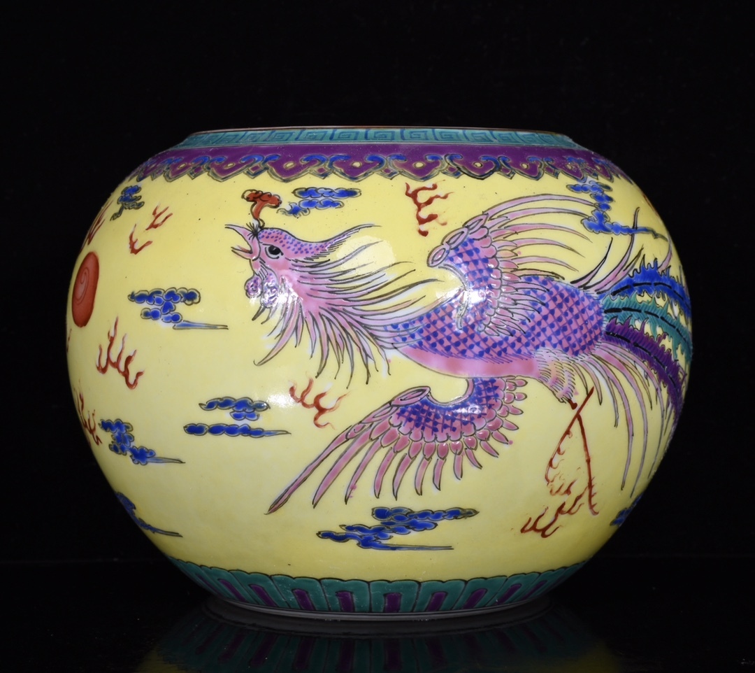 磁器 中國 清代 乾隆年制 琺瑯彩 鳳紋筆洗 唐磁 古陶磁器 時代物 中国美術 賞物 置物 古美術品 YQW01