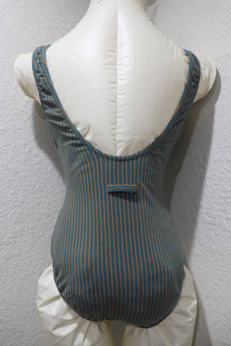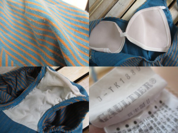 即決 90’s Jean Paul GAULTIER ジャンポールゴルチエ 1990年代 ストライプ柄 スウィムウェアー 水着 レディース 9号 M 黄土色×ブルー