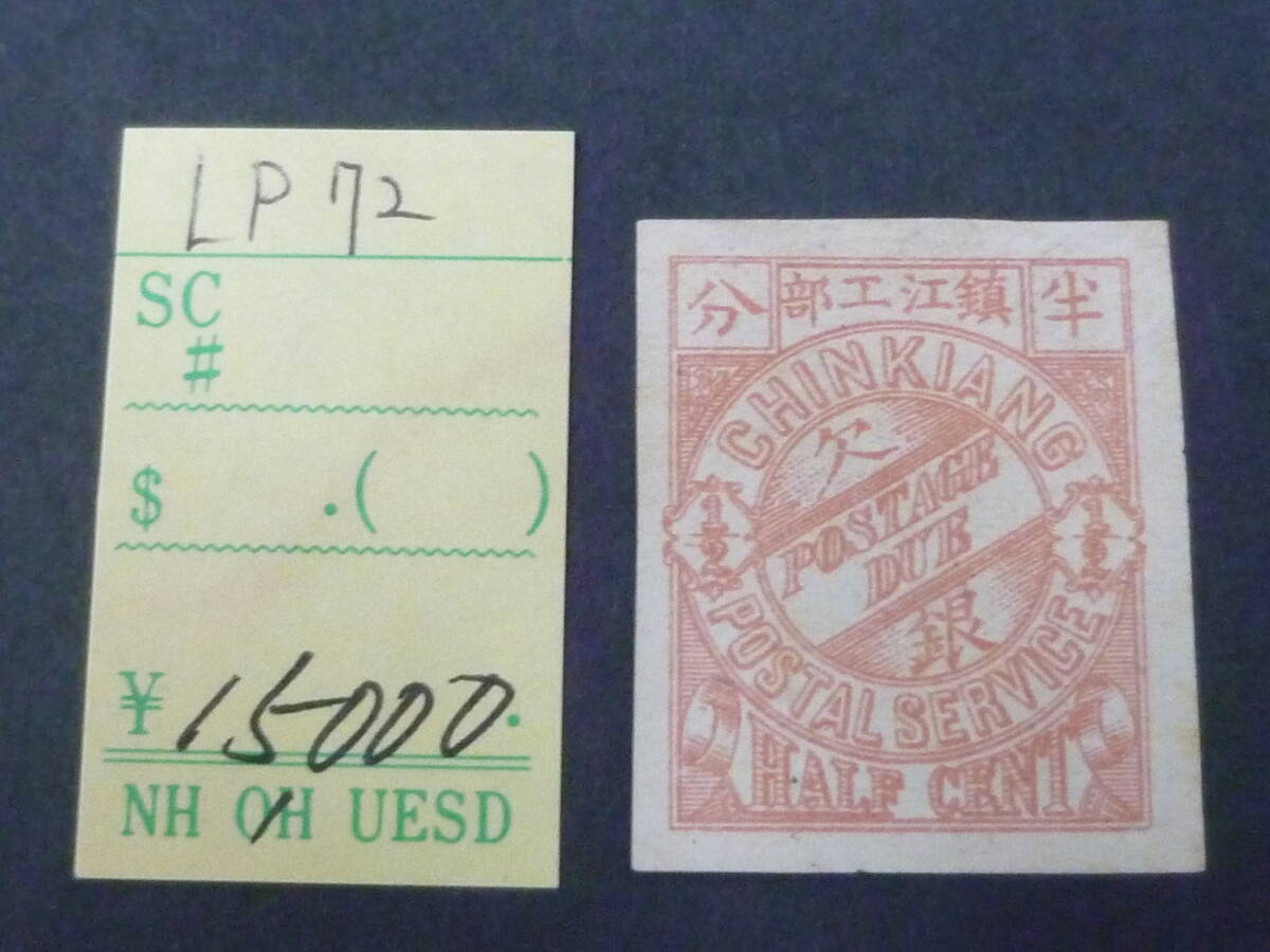24 A №44 旧中国切手 鎮江書信館 1895年 JPS#LP72 正刷欠資 1/2c 無目打 未使用OH・VF ※説明欄必読