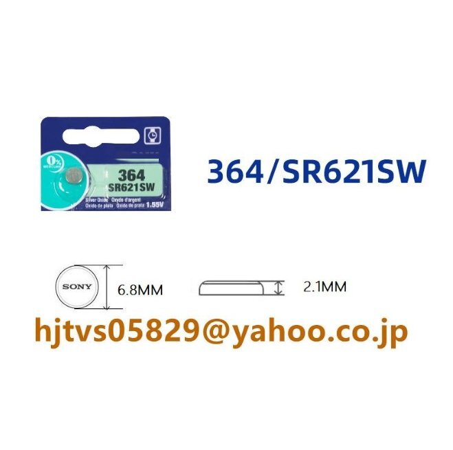 新品 SONY ソニー 364 SR621SW 互換品 時計用無酸化銀ボタン電池 コイン形電池 1.55V 1個入