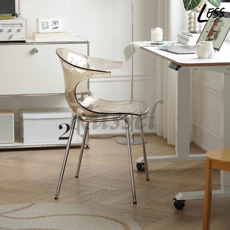 この椅子は、透明感がありながらもしっかりと支えてくれる頑丈な作りとなっており、長時間の使用でも疲れにくいです。快適な座り心地で、食事や作業がはかどります。また、透明なデザインは空間に圧迫感を与えず、広々とした印象を与えます。