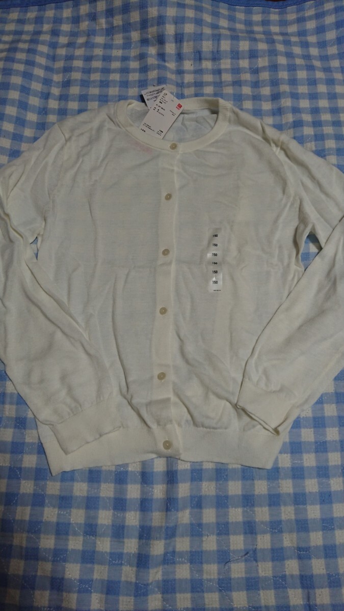 〇165☆未使用・保管品☆ユニクロ☆クルーネックカーディガン ウォッシャブル オフホワイト150