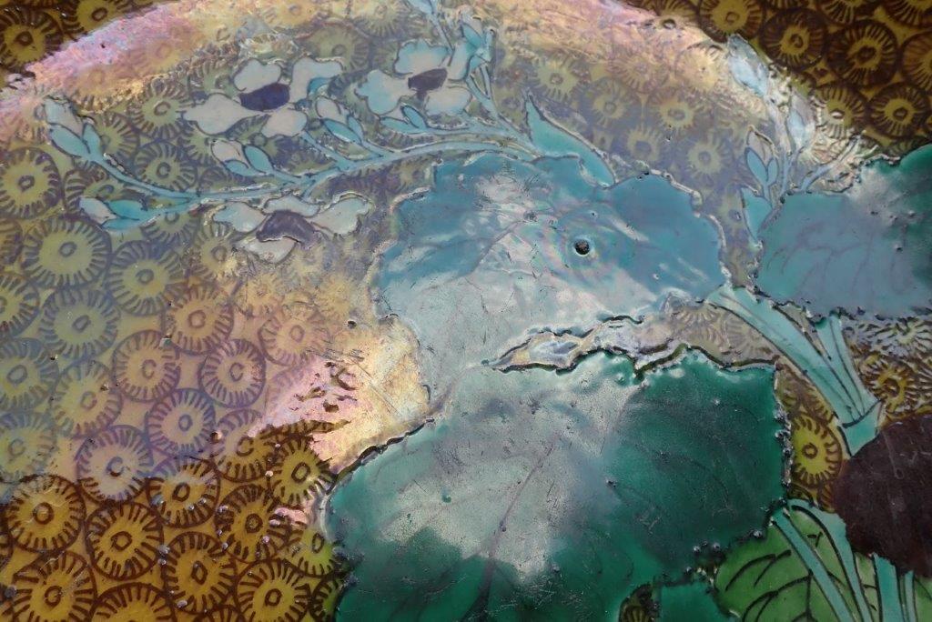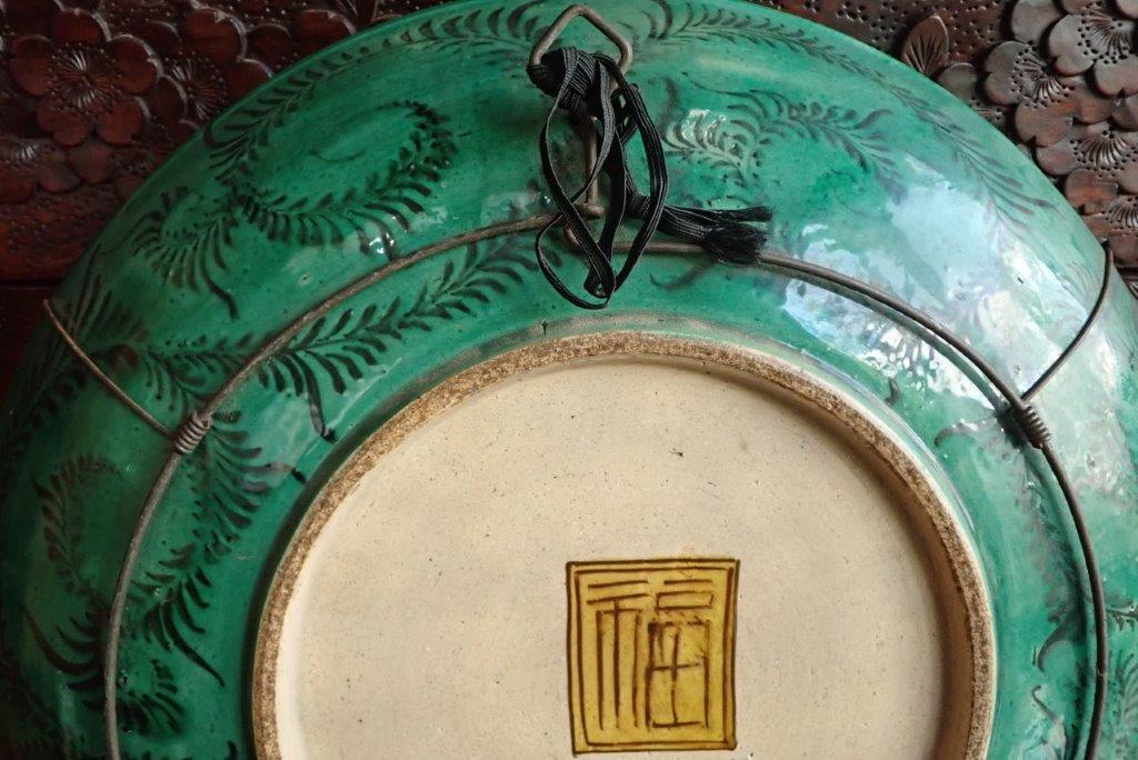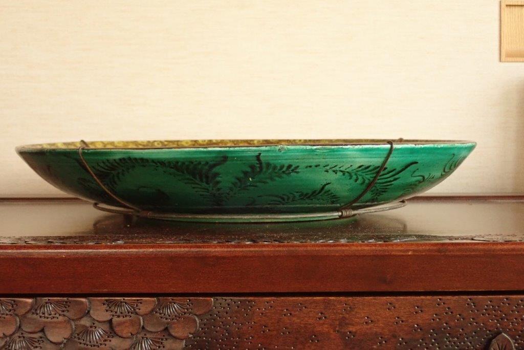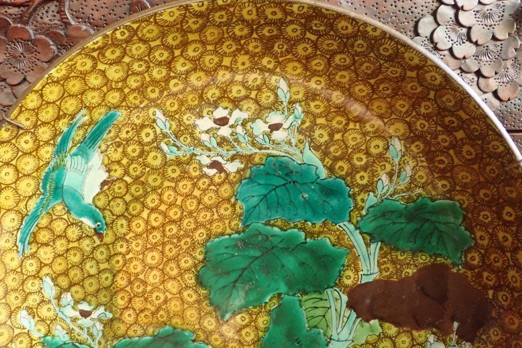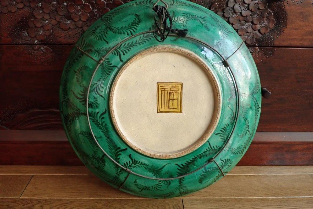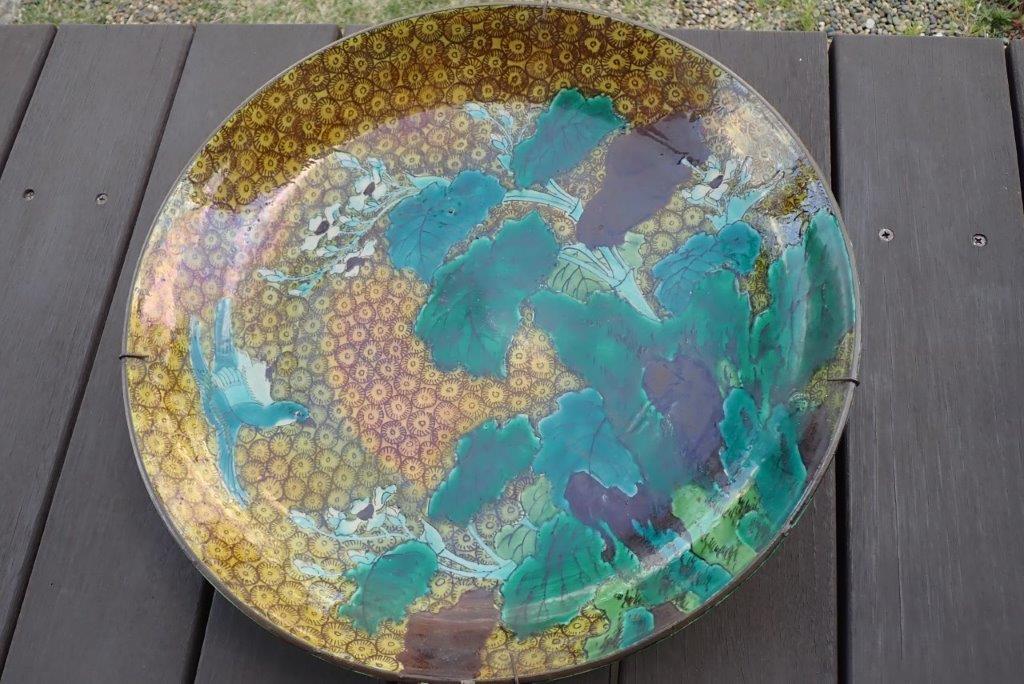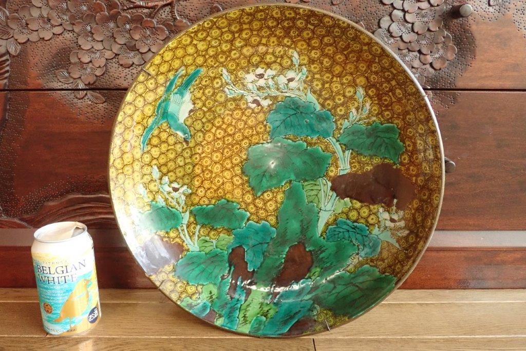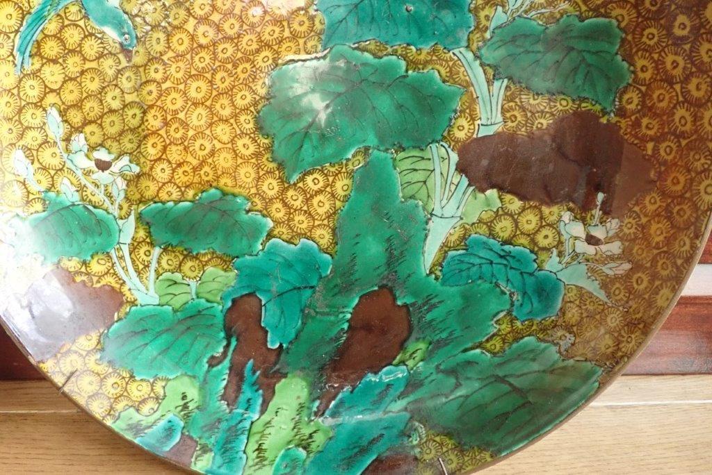 再興九谷松山窯(or古九谷)?  色絵花鳥図平鉢  大皿 青手