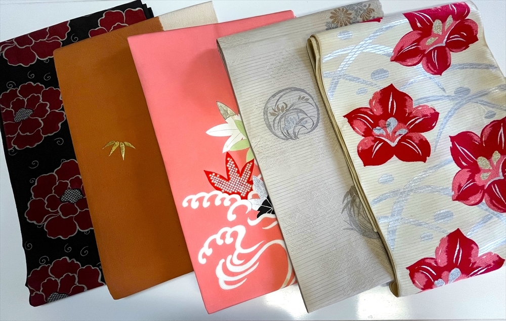リサイクル帯 アンティーク帯 帯皮 5本まとめて 使用可能 リメイク 素材 桔梗 露芝 花の丸 牡丹