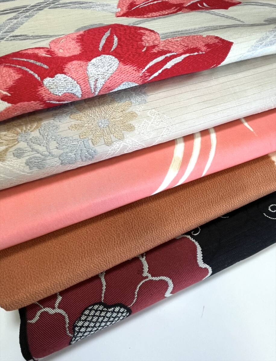 花とら●リサイクル帯 アンティーク帯 帯皮 5本まとめて 使用可能 リメイク 素材 桔梗 露芝 花の丸 牡丹  240404