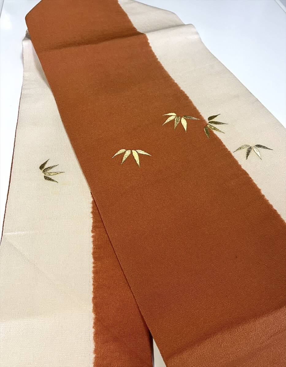 笹の刺繍が施されていて、腹部分にもシミが薄っすらありますが、使用は可能かと思います。