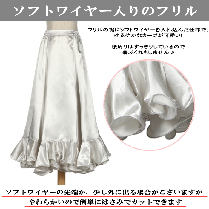 ペチコートやパニエとして使用することも可能なので、裾から見える光沢のサテン生地が綺麗です。