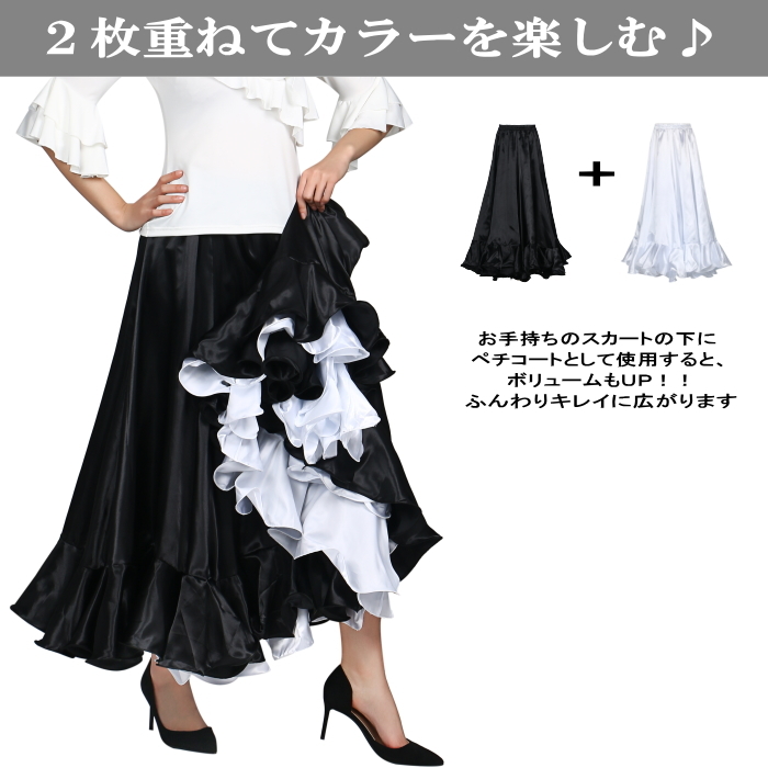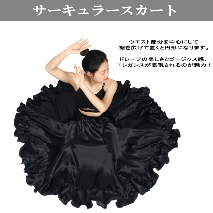 フラメンコ衣装 ペチコート【チェリーピンク】 スカート ダンス衣装 ロングスカート サテンフレア 広がります odb1-