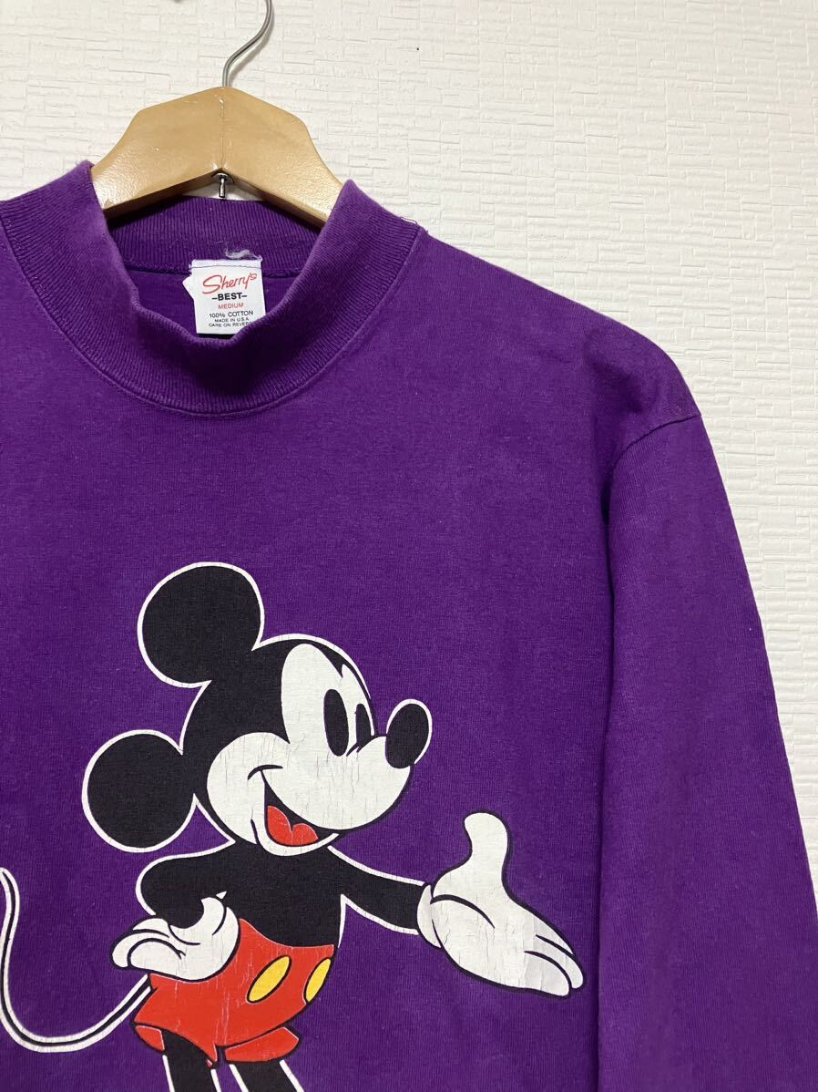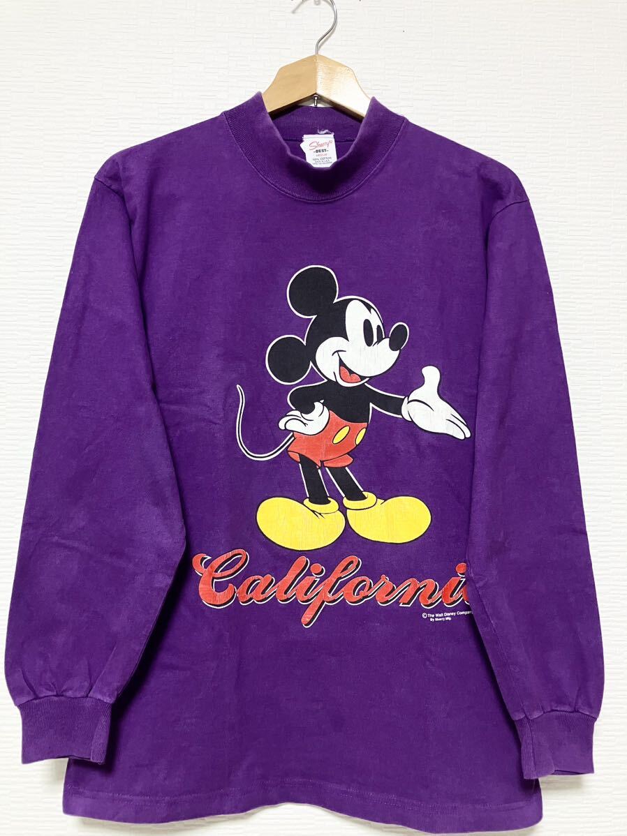 ・80年代〜90年代頃のUSA製オリジナル ヴィンテージ Sherry's BESTタグ The Walt Disney Company Micky Mouse 両面プリントTシャツになります。お洒落で希少なパープルボディーのモックネックになります。お探しの方はこの機会をお見逃しなく!