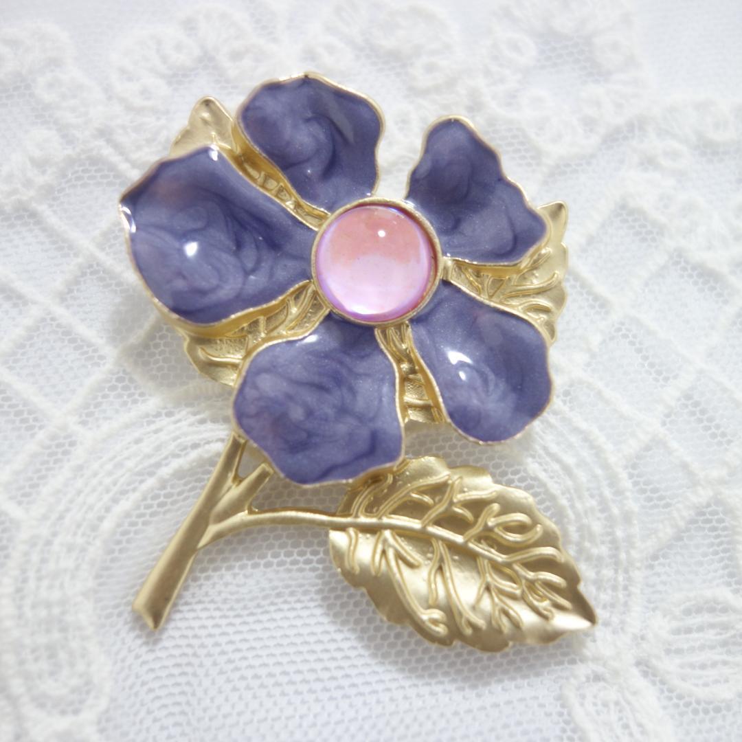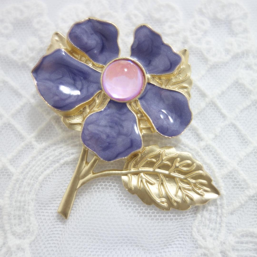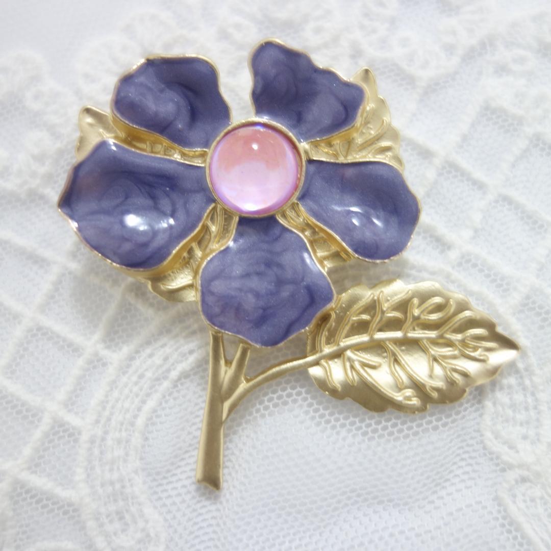 優しい薄紫&ピンク お花 ブローチ ヴィンテージ調 可憐な ブローチ