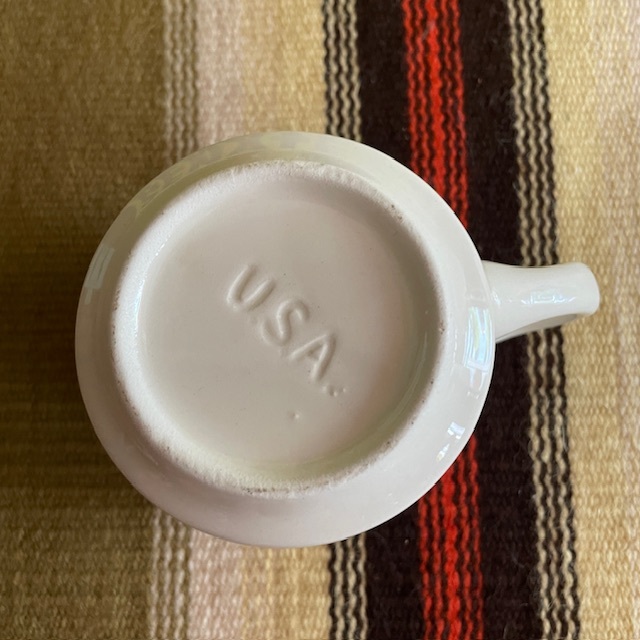 アメリカのアンティークショップで購入しましたマグカップになります。サイズは口の直径約8.8cm、高さ約8.5cmになります。底にUSAの刻印が入ります。状態は割れやカケなどなく良好です。ビンテージ品アンティーク品にご理解ある方 よろしくお願い致します。