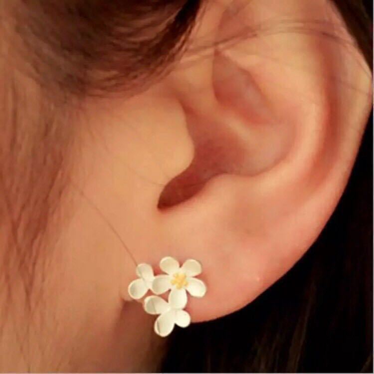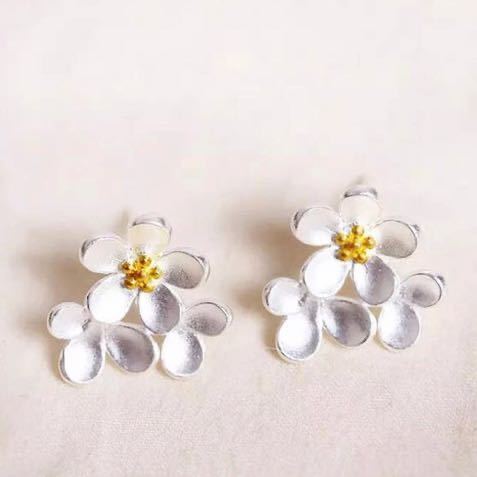 3つのお花が立体的で可愛らしいシルバーピアスです。