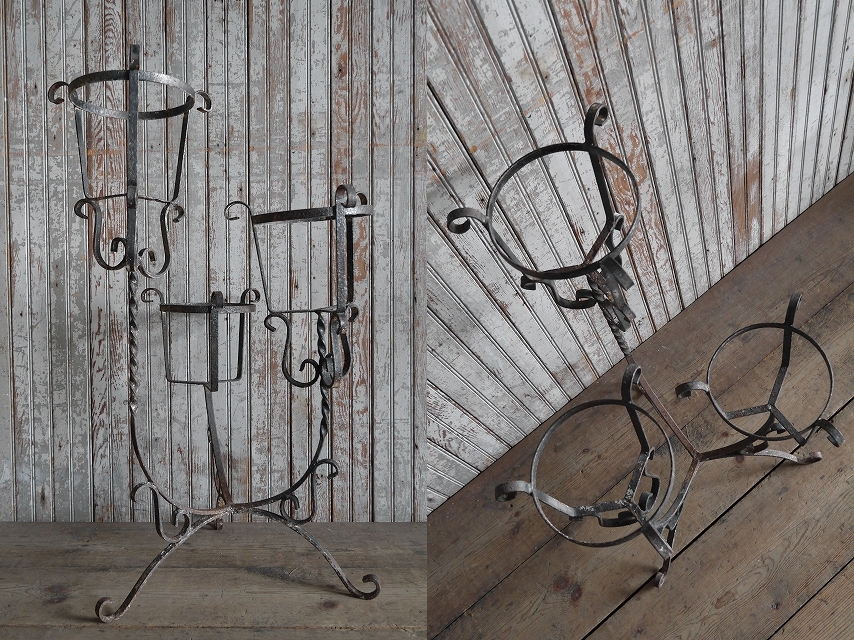 商品説明 岡山STAGEより出品します。アメリカで買い付けたアンティークのプランタースタンドです。アイアン素材の1950年代頃の物で経年によるペイントロスや金属劣化具合がアンティークならではの趣があります。無骨なデザインが雰囲気良く存在感がありますのでインテリアのアクセントにお勧めです。状態ですが、全体的に金属劣化や錆、塗装の剥がれ、傷や擦れ、くすみ、汚れ、歪み等の使用感はございますが雰囲気を損なうようなダメージはなくアンティークならではの良い状態かと思います。あくまでアンティークになりますのでご理解いただける方のご購入をよろしくお願い致します。 サイズ 高さ約81cm、直径最大約51cm、ホルダー各々:上側直径内寸約17.5cm、下側直径内寸約15.5cm、高さ内寸リング上側縁まで約15cmです。 予定発送方法 保障の利く佐川急便の元払い200cmサイズ料金で行います。 コメント 店頭でも販売しております。タッチの差で売り切れた場合はご了承下さい。よろしくお願いします。■落札後の連絡及びご質問の返答は基本的に午前10時~午後6時までとさせて頂きます。毎週水、木曜日、年末年始や時間外でのご連絡は休み明け及び翌日のご連絡となりますので予めご了承下さい。 STAGEホームページ https://stage-stage.ocnk.net// |