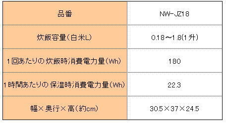 ●1時間あたりの保温時消費電力量(Wh):22.3