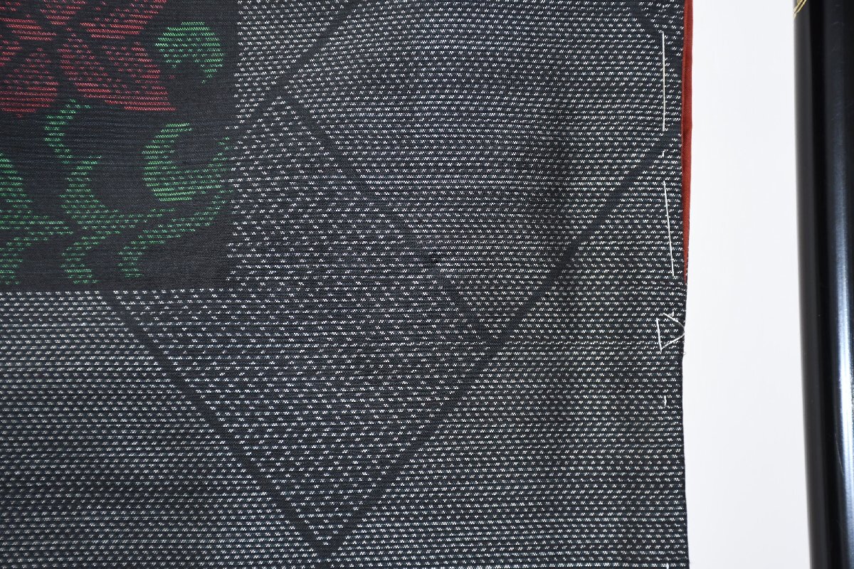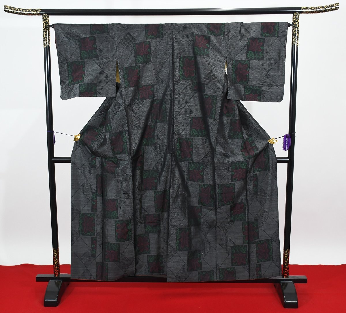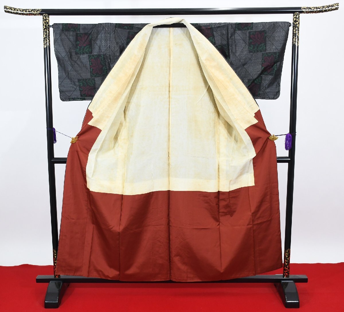 | サイズ | ▼身丈 (背中から) 150.5cm ▼裄丈 66cm ▼袖丈 45cm ▼後巾 32cm ▼前巾 24cm |