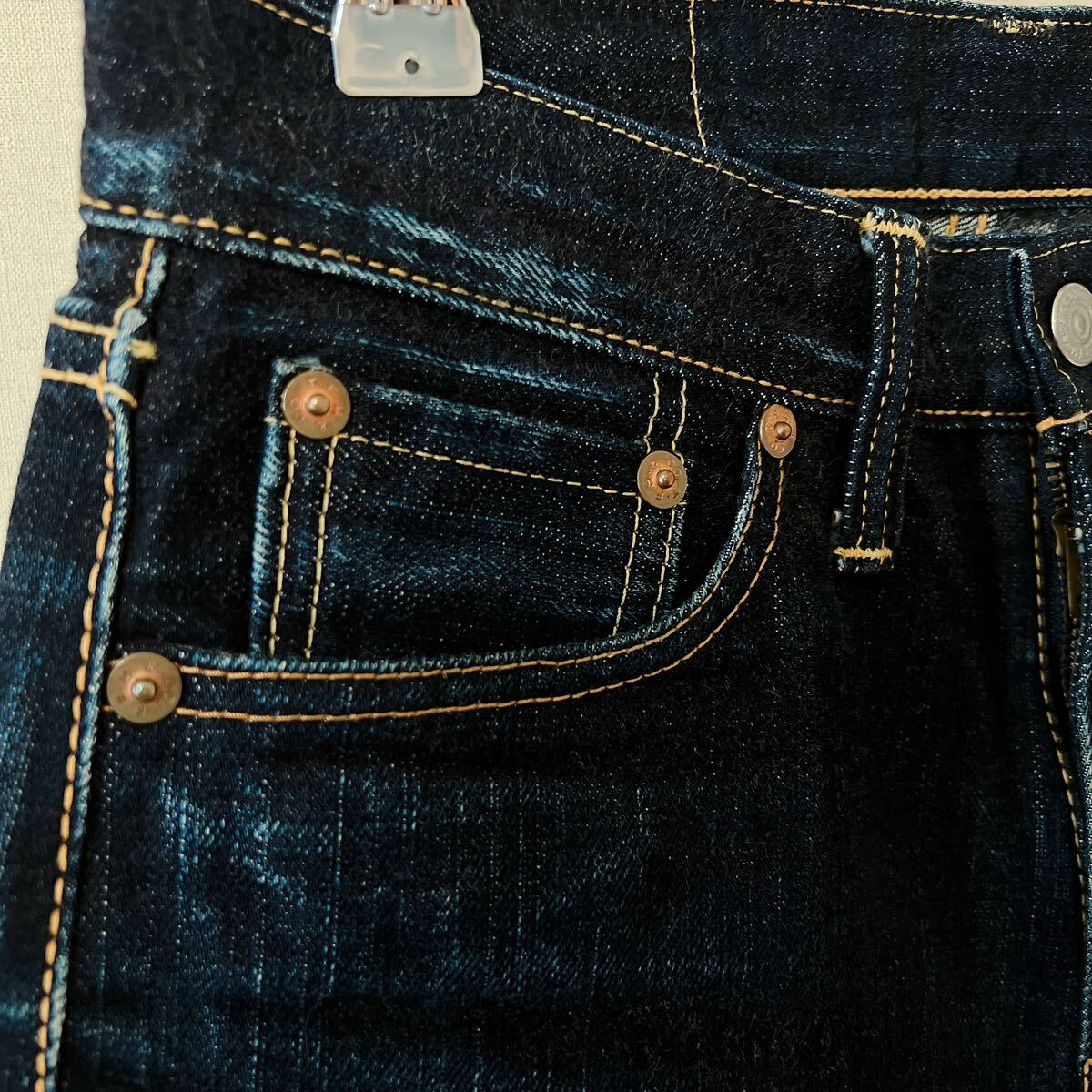 今までのジーンズリペア経験とデータにもとづき改良された非対称のポケットや強度のあるコアスパン糸を使用したフラットヘッドの新スタンダードデニムパンツでしたが、今はもう廃盤となっており生産されていません。