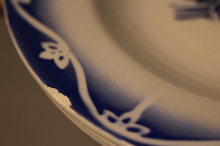 サイズ、直径23cm、高さ4cm、総重量1140g。1枚の縁に浅いチップがありますが(写真参照)ほとんど使用されていないようです、状態良好。