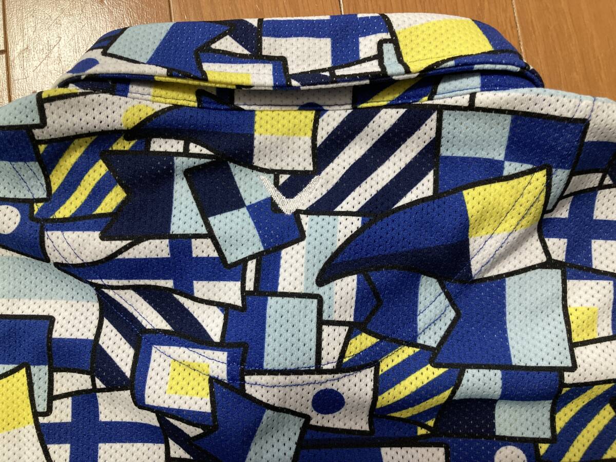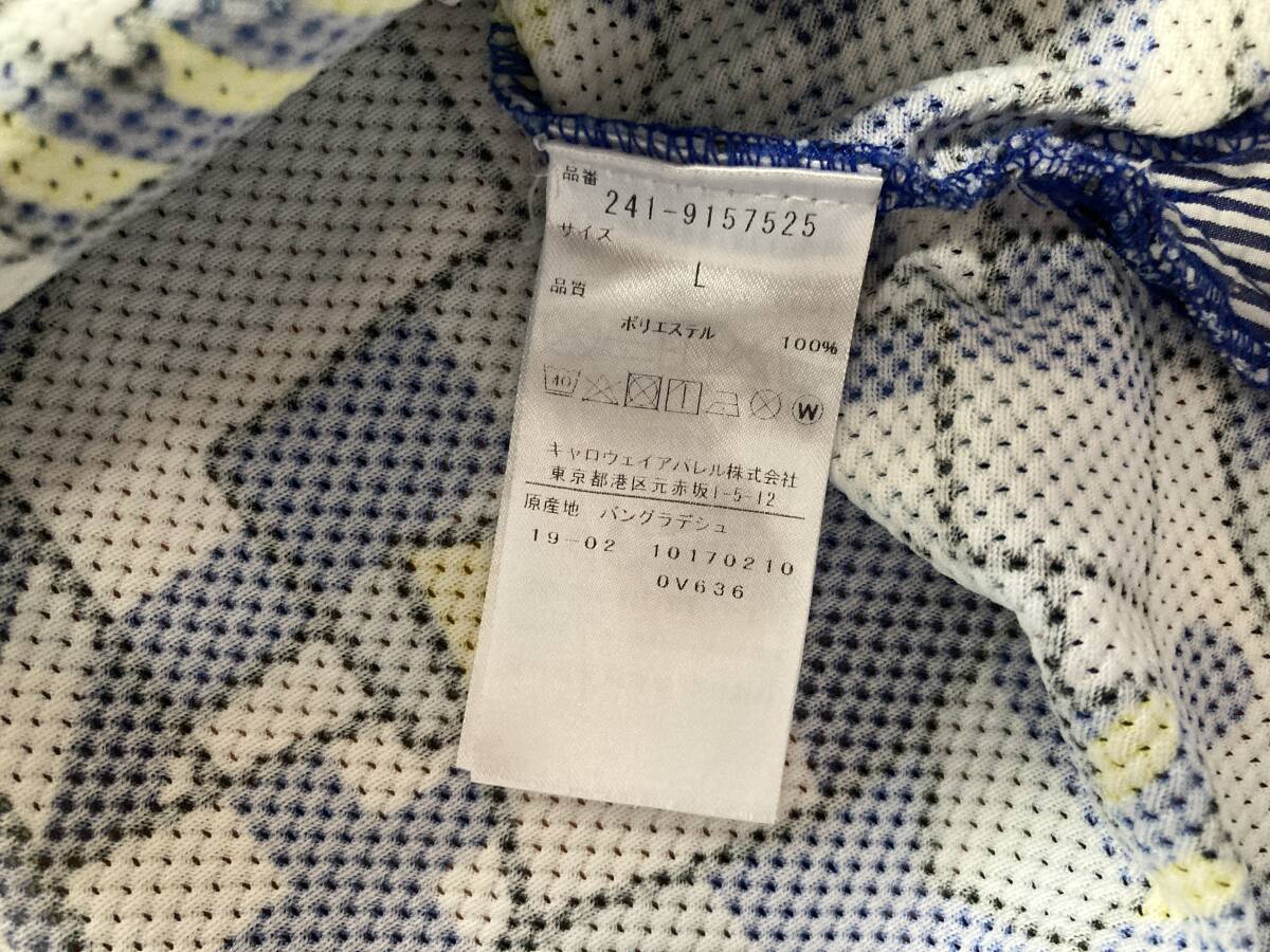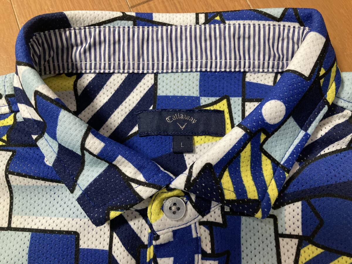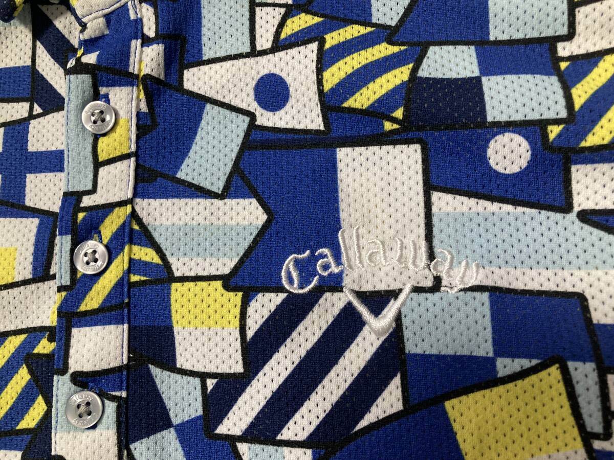 商品名:Callaway フラッグ柄 半袖ゴルフシャツ サイズ:表記L 平置き:肩幅42,5cm 身幅(脇下~脇下)52cm 着丈(襟付け根~裾)70cm 袖丈(肩~袖先)23cm ※素人採寸の為多少の誤差はご了承下さい。 カラー:ブルー、ネイビー、ホワイト、イエロー 状態:キャロウェイアパレル株式会社。ポリエステル100%(ストレッチ)。刺ロゴ。目立ったダメージ等無く良い程度だと思います。 発送方法:レターパックプラス(配達記録付600円)orレターパックライト(配達記録無し430円) ※古着になりますので神経質な方、ご理解の無い方の御入札はお控え下さい。送料、振込手数料は落札者様の御負担となります。ノークレーム、ノーリターンでお願い致します。